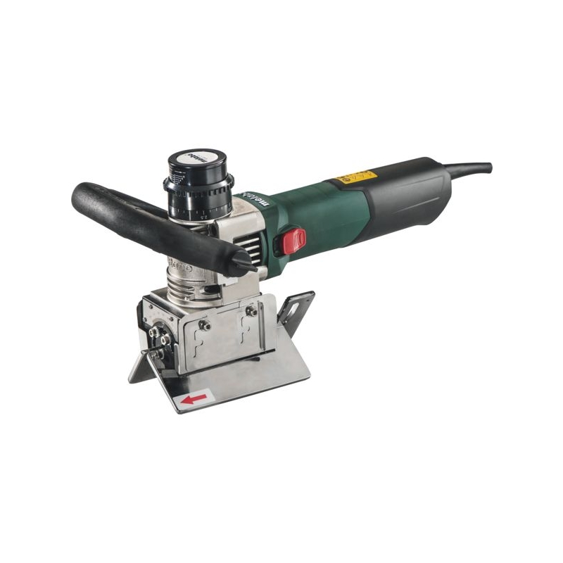 Pour hauteurs de chanfrein jusqu'à 10 mm pour la préparation des cordons de soudure. Tête de fraisage universelle avec trois plaquettes amovibles en carbure pour tous les angles de chanfrein de 0 - 90°. Anse réglable sans outil. Protection électronique contre la surcharge, démarrage progressif et protection anti-redémarrage. Protection de l'utilisateur par les tôles latérales déflectrices pour les copeaux. Vitesse : 12200 tr/mn Puissance : 1550 W Largeur de chanfrein max. 45° : 14 mm Hauteur de chanfrein max. 45° : 10 mm Gradation du réglage de la profondeur de fraisage : 0,1 mm Plus petit Ø extérieur pour les arrondis : 75 mm Poids : 4,900 kg Livrée en coffret métal avec 3 plaquettes amovibles en carbure Universal, cylindre de butée, tournevis Torx 15, tournevis 4 avec poignée en T, clé à fourche taille 10 et poignée.