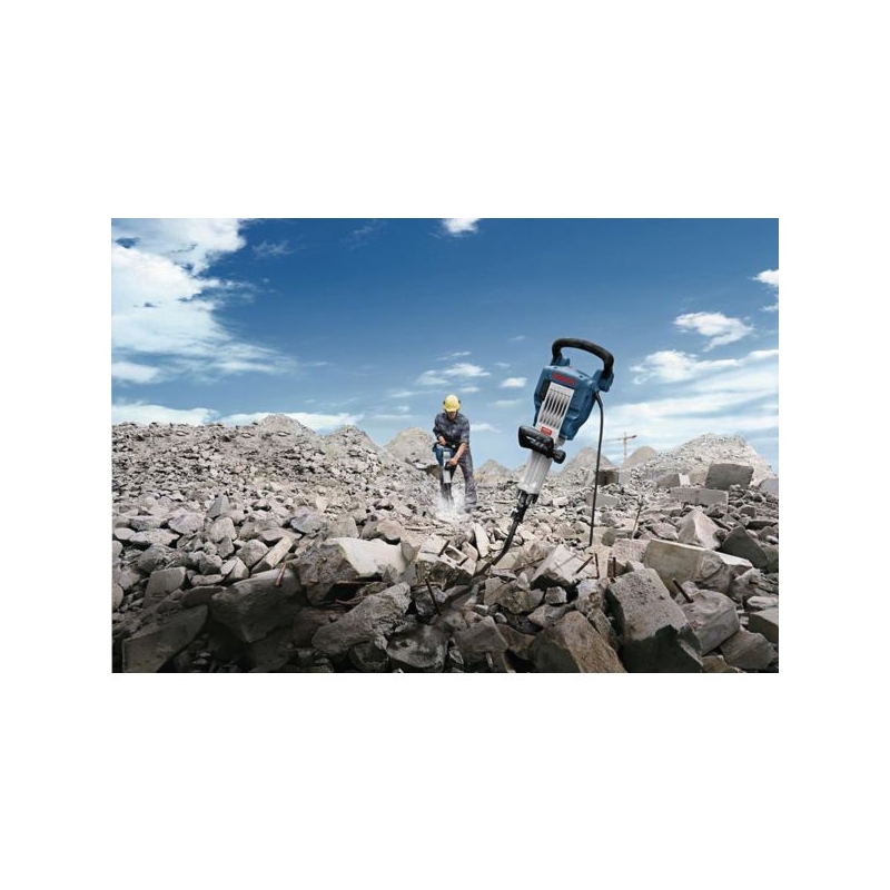 Système Vibration Control. Excellente maniabilité, performance exceptionnelle jusqu'à 13 t de béton/jour. Emmanchement : hexagonal 30 mm Puissance : 1750 W Puissance de frappe : 41 J Cadence de frappe : 1300 cps/mn Taux de vibrations : 13 m/s² Poids : 16,700 kg Livré en coffret de transport à roulettes avec burin pointu, tube de graisse, chiffon et poignée supplémentaire.