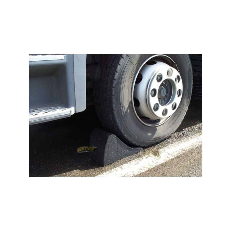 Butée de roue pour véhicule léger ou poids lourd et autocar. Réf. 300246 et 36951 fabriquées en caoutchouc dur résistant aux UV, huile et sel. Réf. 306617 fabriquée en PEHD. Excellente adhérence au sol et au pneu. Facile à manipuler et à ranger grâce à une sangle ou poignée de préhension solide.