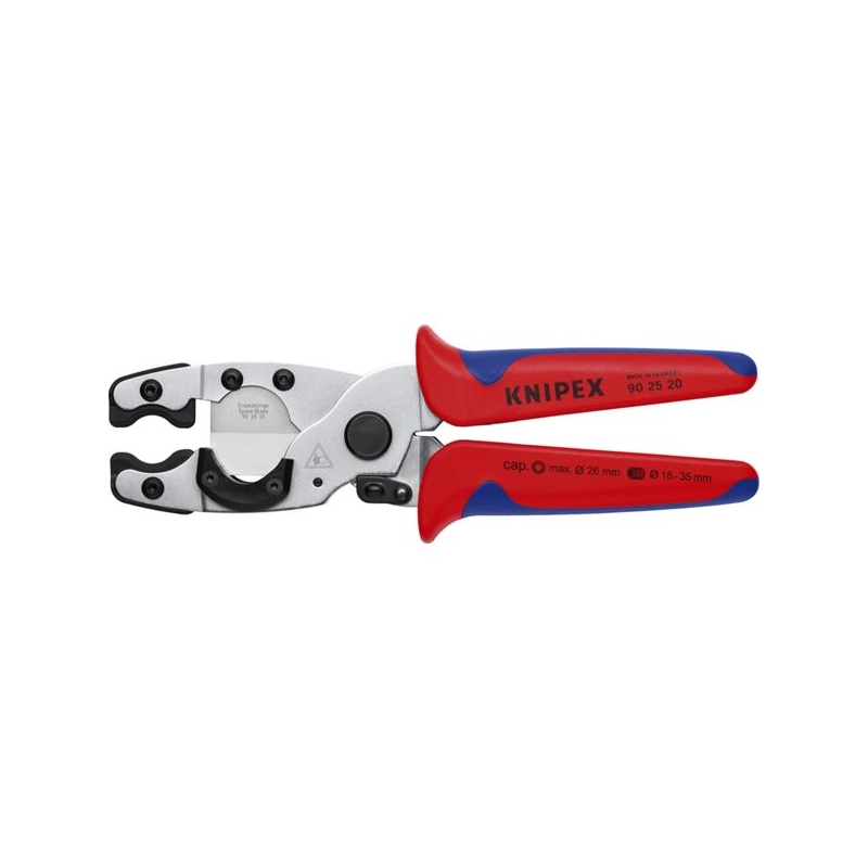 Pour couper les tubes PER et multicouche d’un diamètre de 12 à 25 mm et les gaines de protection souples d’un diamètre de 18 à 35 mm sans endommager le tube intérieur. Longueur : 210 mm