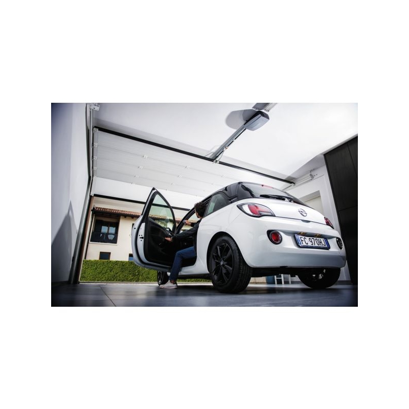 Surface maximale de la porte 9 m²: - porte basculante à contrepoids jusqu'à 2,40 m de haut, - porte basculante à ressorts jusqu'à 2,25 m de haut, - porte sectionnelle jusqu'à 2,20 m de haut. Force de traction 600 N. Tension 24 V cc. Protection IP 40. Avec éclairage de courtoisie à LED. Ralentissement et détection d’obstacle. Programmation à afficheur direct sur le capot. Décélérateur de l’extérieur possible. Kit comprenant : - 1 motoréducteur avec armoire de commande et encodeur, - 1 émetteur, - 4 fonctions bicanal en 433,92 MHz, - 1 récepteur. Guide à chaine à commander séparément. Conditionnement : boite