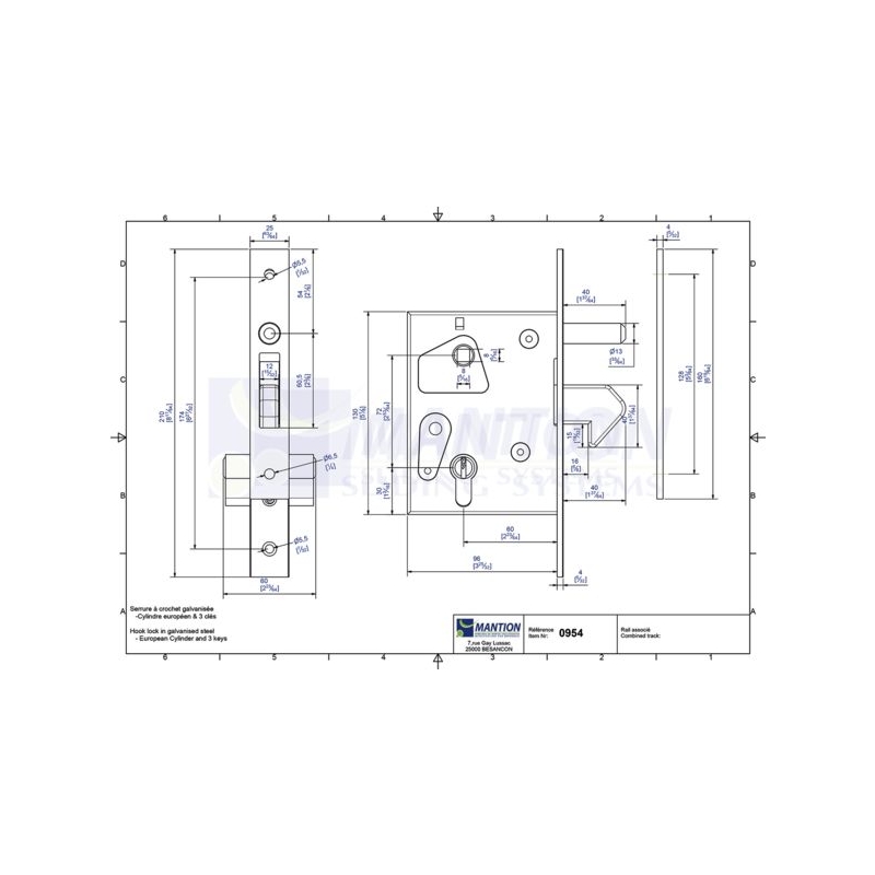 | 59637 | 2 pièces | 0954 | serrure avec cylindre européen + 3 clés | 47,30 € HT 56,76 € TTC |