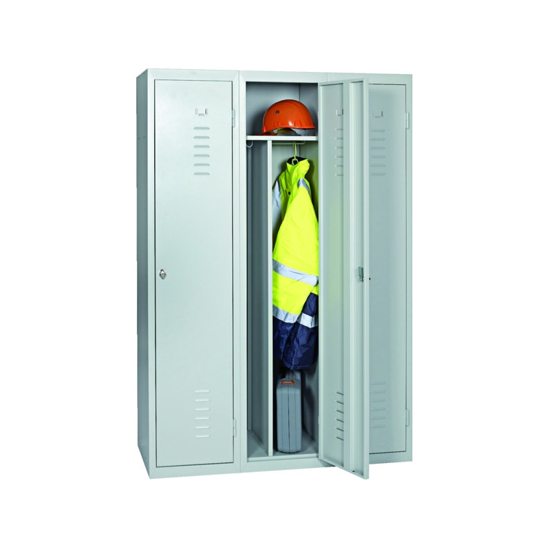 Ensemble composé d'une case initiale (avec 2 côtés) et de cases suivantes (avec un côté commun), assemblage par emboîtage sans aucune vis. En tôle d'acier, corps et portes 8/10e. Porte à raidisseur vertical avec évents d'aération hauts et bas, porte-étiquettes et fermeture par moraillon débrayable porte-cadenas pour une meilleure sécurité. Une tablette supérieure (charge 30 kg). Ouverture des portes à 180°. Hauteur sur socle : 1800 mm Profondeur : 500 mm Coloris : corps et porte gris Livré démonté. Assemblage simple et rapide sans outil.